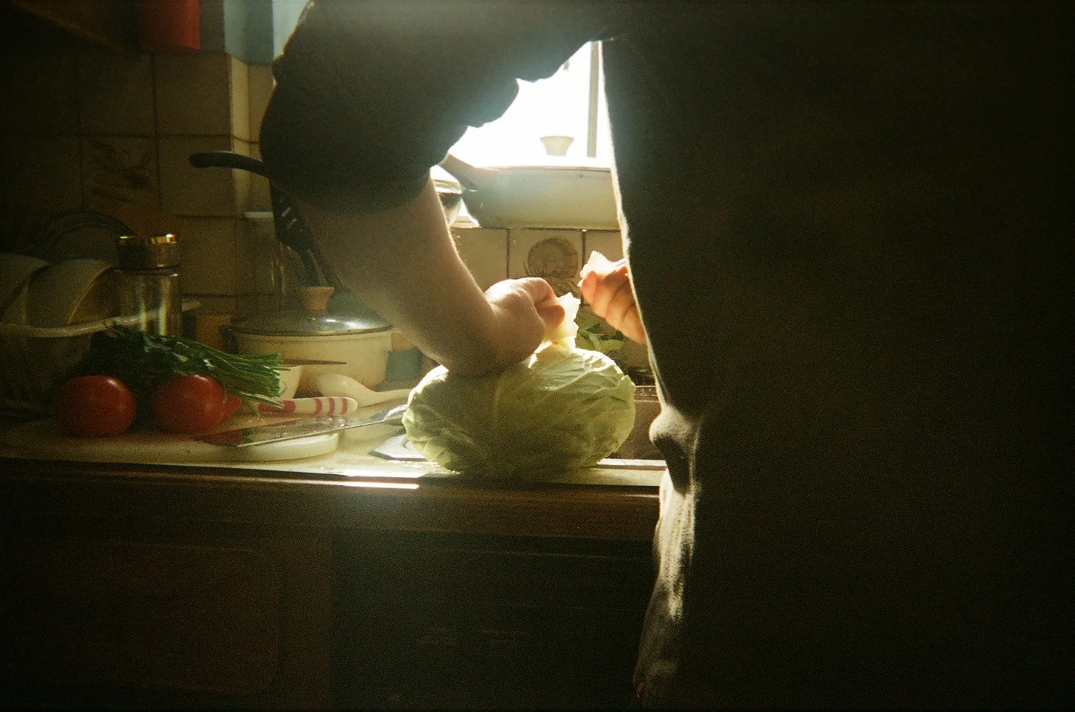 After dinner, he clears the table and washes the dishes. Then, he sits by the sink again, smoking and looking at his phone. It seems like he isolates himself from the family, yet he cooks for us every day.
